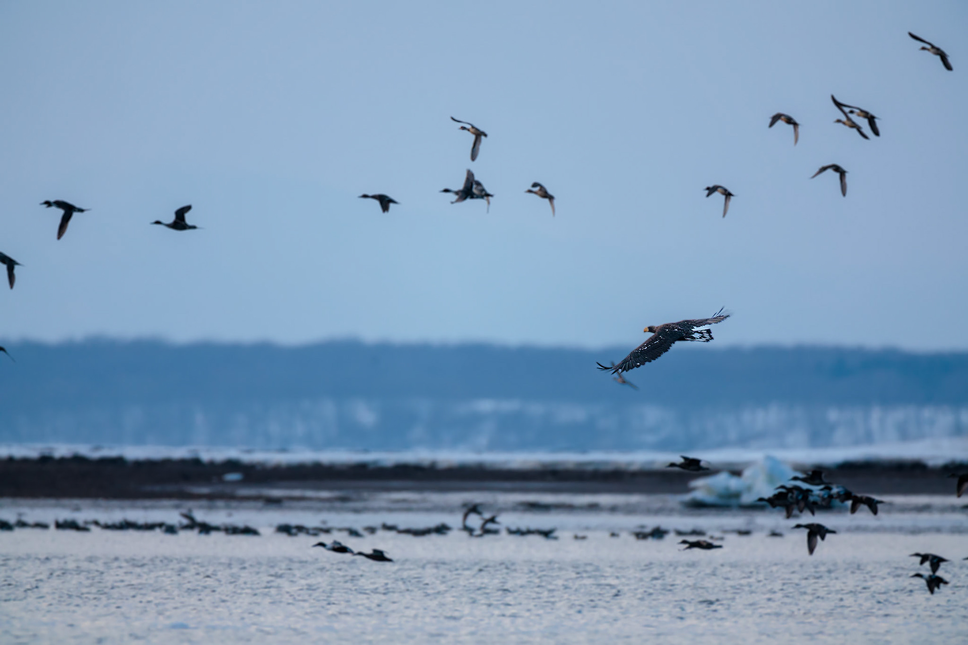 2022年3月下旬に北海道の道東地方に (知床・野付・釧路) オジロワシを観察に行った。 僕は野鳥の中でも白頭鷲が大好きで、 特にその尊厳を感じさせる表情に 勇気をもらうことが以前にもあった。 今回は国内で同系のオジロワシを観察しながら、 障害を乗り越える勇気や、 ありのままを受け入れる強さ を教わった。 道東の冬の光は渡米時代を彷彿させ、 太陽の眩しい光を心で感じることもできた。 素晴らしい気付きの旅を有難う。